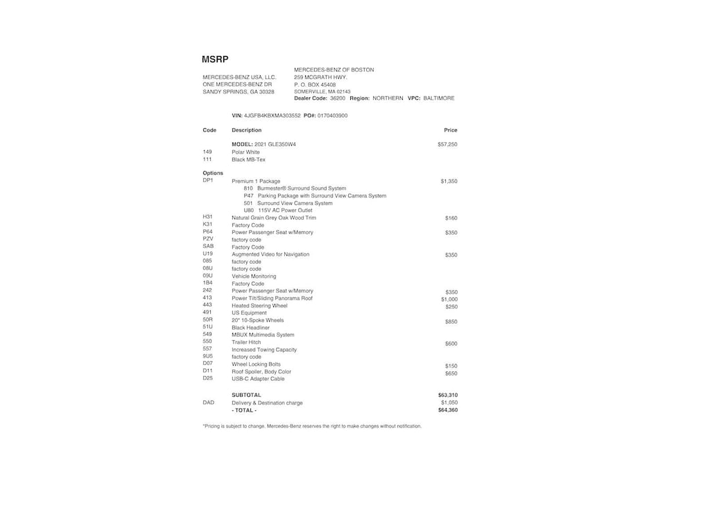 PREMIUM PACKAGE Parking Assist Code, Surround View System, 115V Power Outlet, Burmester® Surround Sound System, PANORAMA SLIDING SUNROOF, WHEELS: 20 TWIN 5-SPOKE Tires: 275/50R20, BODY COLOR ROOF SPOILER, TRAILER HITCH Increased Towing Capacity, PASSENGER SEAT MEMORY, MBUX AUGMENTED VIDEO FOR NAVIGATION, HEATED STEERING WHEEL.