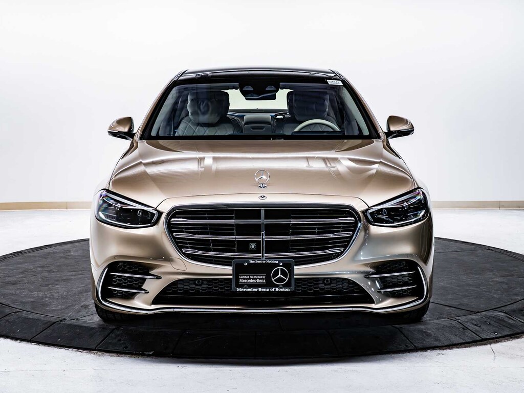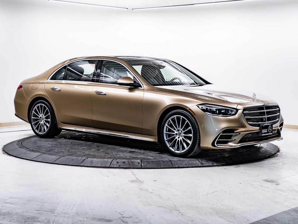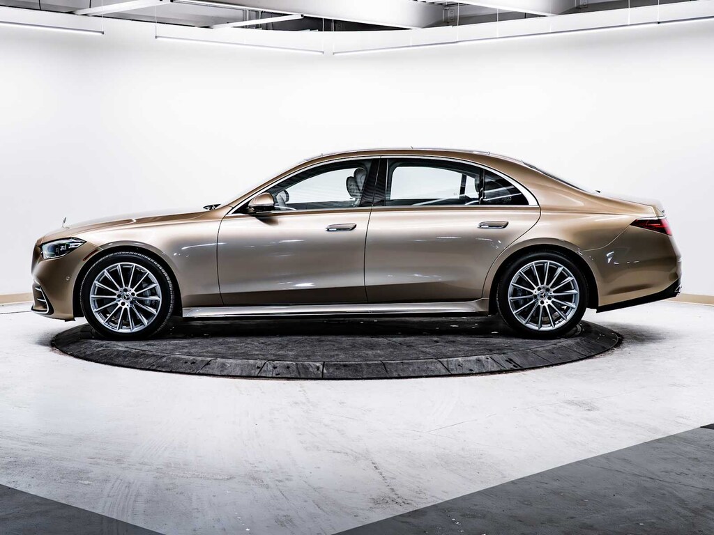 Blind Spot Monitor, Lane Keeping Assist, Cross-Traffic Alert, Electronic Stability Control, Brake Assist, 4-Wheel ABS, 4-Wheel Disc Brakes, Tire Pressure Monitoring System Mercedes-Benz S 580 with Kalahari Gold Metallic exterior and Macchiato/Magma Grey interior features a 8 Cylinder Engine with 496 HP at 5500 RPM*.