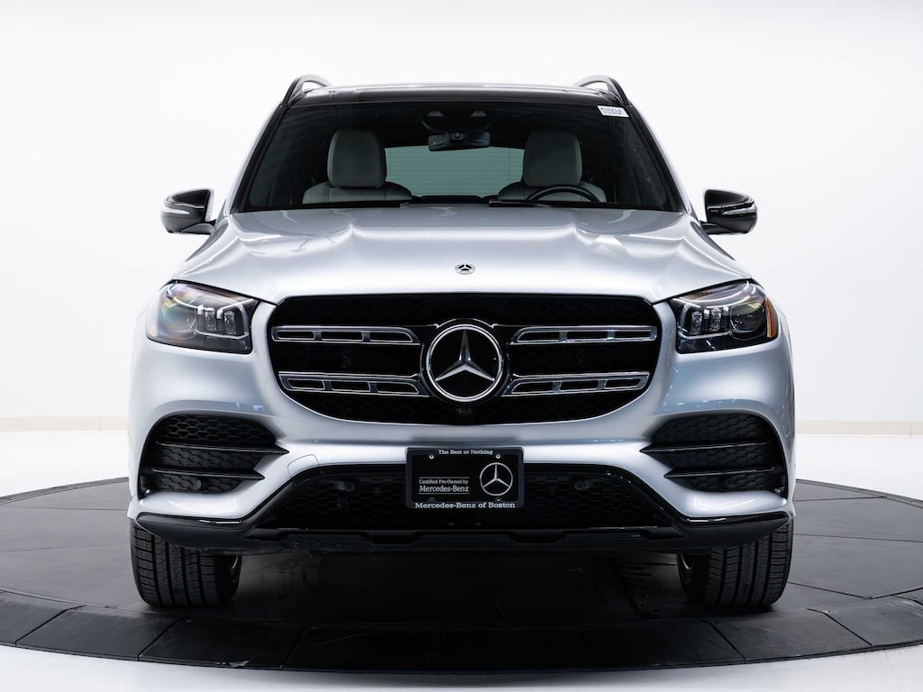 Mercedes-Benz Certified, Excellent Condition, CARFAX 1-Owner. Cirrus Silver Metallic exterior and Macchiato Beige/Black interior, GLS 450 trim. Heated Seats, Third Row Seat, Nav System, Moonroof, Rear Air, Power Liftgate, Full-Time 4MATIC® All-Wheel, Turbo Charged Engine, Panoramic Roof, Hitch, DRIVER ASSISTANCE PACKAGE PLUS, ROOF SPOILER, TRAILER HITCH, HEATED STEERING WHEEL, Aluminum Wheels, Non-Smoker vehicle. SEE MORE!