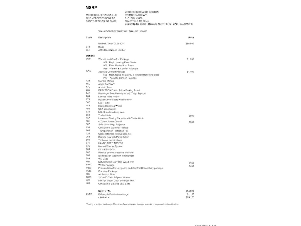 ACOUSTIC COMFORT PACKAGE: increased cabin insulation, windshield w/infrared-reflecting film and side windows w/acoustic infrared absorbing film, WARMTH & COMFORT PACKAGE Rapid Heating Front Seats, Heated Armrest, 4-ZONE CLIMATE CONTROL, TRAILER HITCH Increased Towing Capacity, WINTER PACKAGE Heated Windshield Washer System, Heated Steering Wheel.