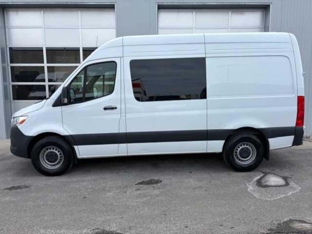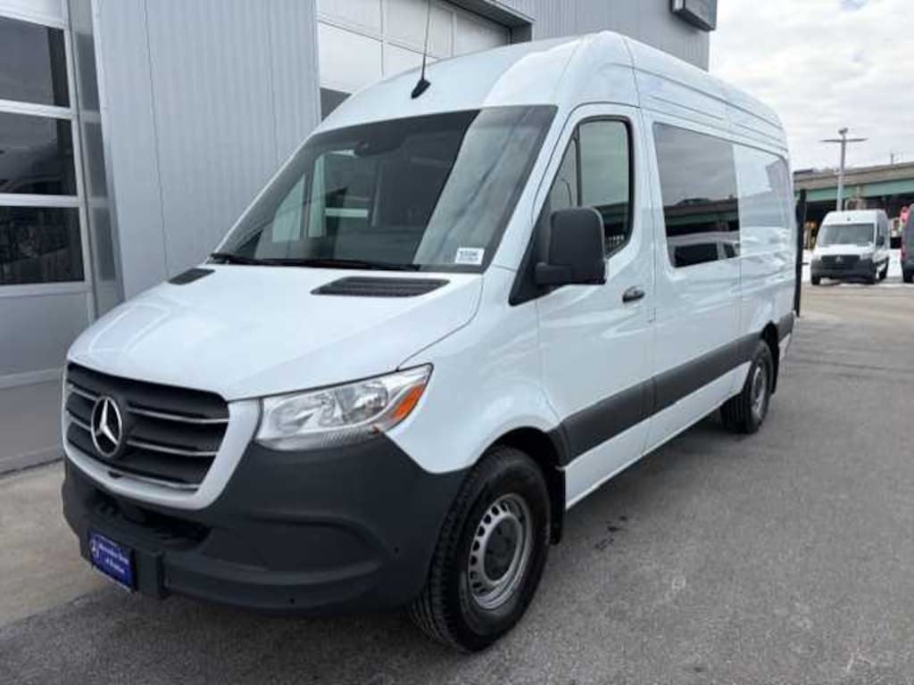 Lane Keeping Assist, Brake Assist, 4-Wheel ABS, 4-Wheel Disc Brakes, Tire Pressure Monitoring System Mercedes-Benz Sprinter Crew Van with Arctic White exterior and Black interior features a 4 Cylinder Engine with 211 HP at 3800 RPM*.