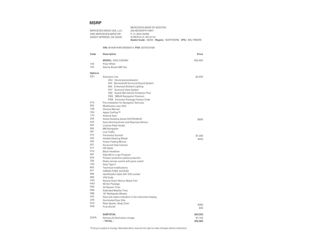 EXCLUSIVE TRIM PACKAGE: Surround View System, Enhanced Ambient Light, MB Navigation, Burmester® 3D Surround Sound System, 15 high-performance speakers, DSP amplifier w/a total output of 710 watts, FrontBass technology, sound optimization, 2 built-in sound presets of the 3D surround sound system, equalizer function and noise compensation, Sound Personalization, Illuminated Door Sills, GUARD 360, PANORAMA SUNROOF, ACTIVE DISTANCE ASSIST DISTRONIC®, BODY COLOR REAR SPOILER, HEATED STEERING WHEEL.