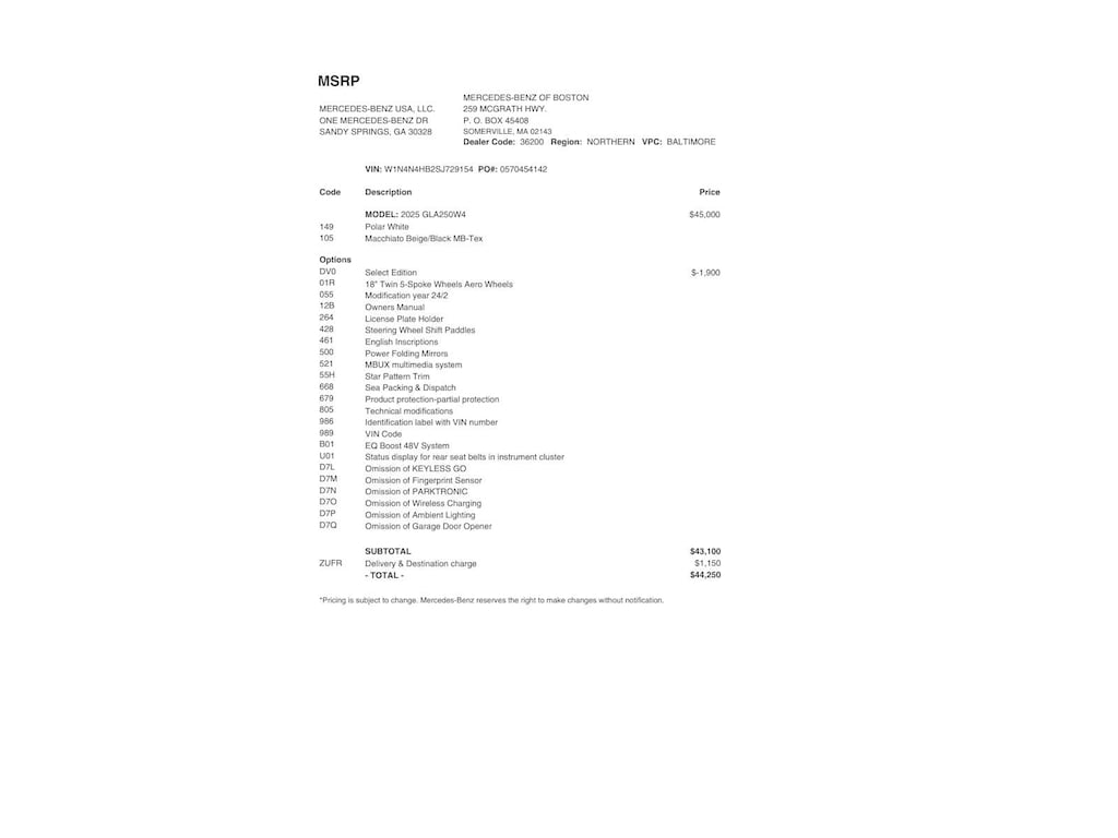 Service Work completed on this Mercedes-Benz GLA 250 included: Oil & Filter Change Using Original OEM Parts, Battery Voltage Test, Tires Inspected, Brake Inspection, Emissions System Check, Professional Detailed Inside and Out, Function Test all Lights, Cooling System Inspection, Transmission Fluid Inspection, Differential Fluid Inspection, Function Test all Options & Accessories.