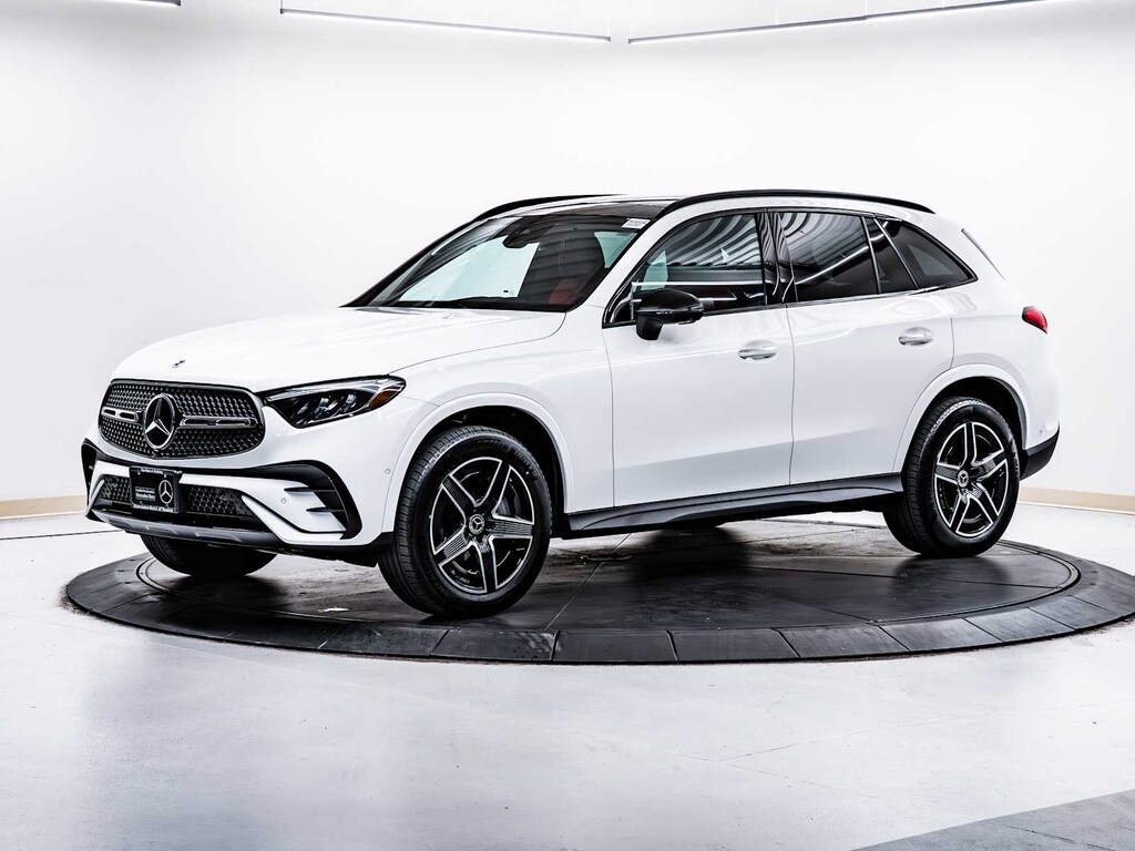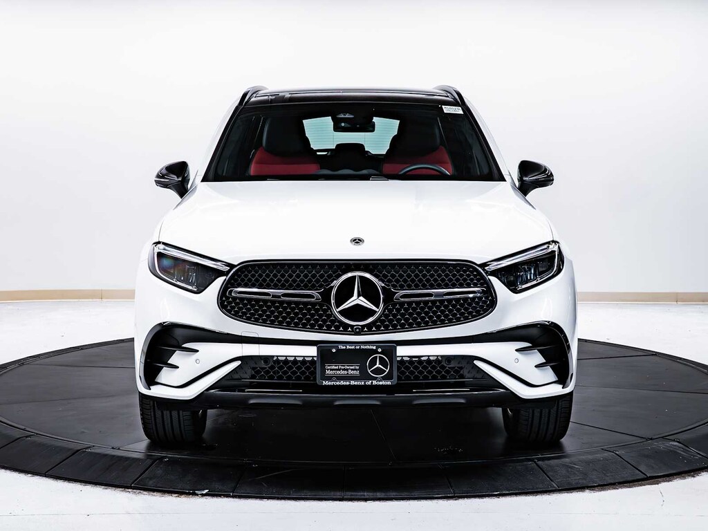 Blind Spot Monitor, Child Safety Locks, Electronic Stability Control, Brake Assist, 4-Wheel ABS, Tire Pressure Monitoring System, 4-Wheel Disc Brakes Mercedes-Benz GLC 300 with Polar White exterior and AMG® Power Red/Black interior features a 4 Cylinder Engine with 255 HP at 5800 RPM*.