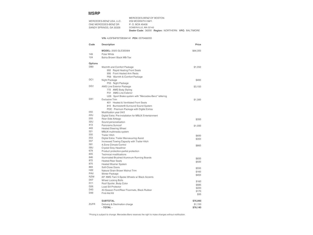 Service Work completed on this Mercedes-Benz GLE 350 included: Oil & Filter Change Using Original OEM Parts, Battery Voltage Test, Tires Inspected, Brake Inspection, Emissions System Check, Professional Detailed Inside and Out, Function Test all Lights, Cooling System Inspection, Transmission Fluid Inspection, Differential Fluid Inspection, Function Test all Options & Accessories.