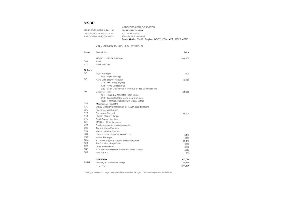 Service Work completed on this Mercedes-Benz GLE 350 included: Oil & Filter Change Using Original OEM Parts, Battery Voltage Test, Tires Inspected, Brake Inspection, Emissions System Check, Professional Detailed Inside and Out, Function Test all Lights, Cooling System Inspection, Transmission Fluid Inspection, Differential Fluid Inspection, Function Test all Options & Accessories.