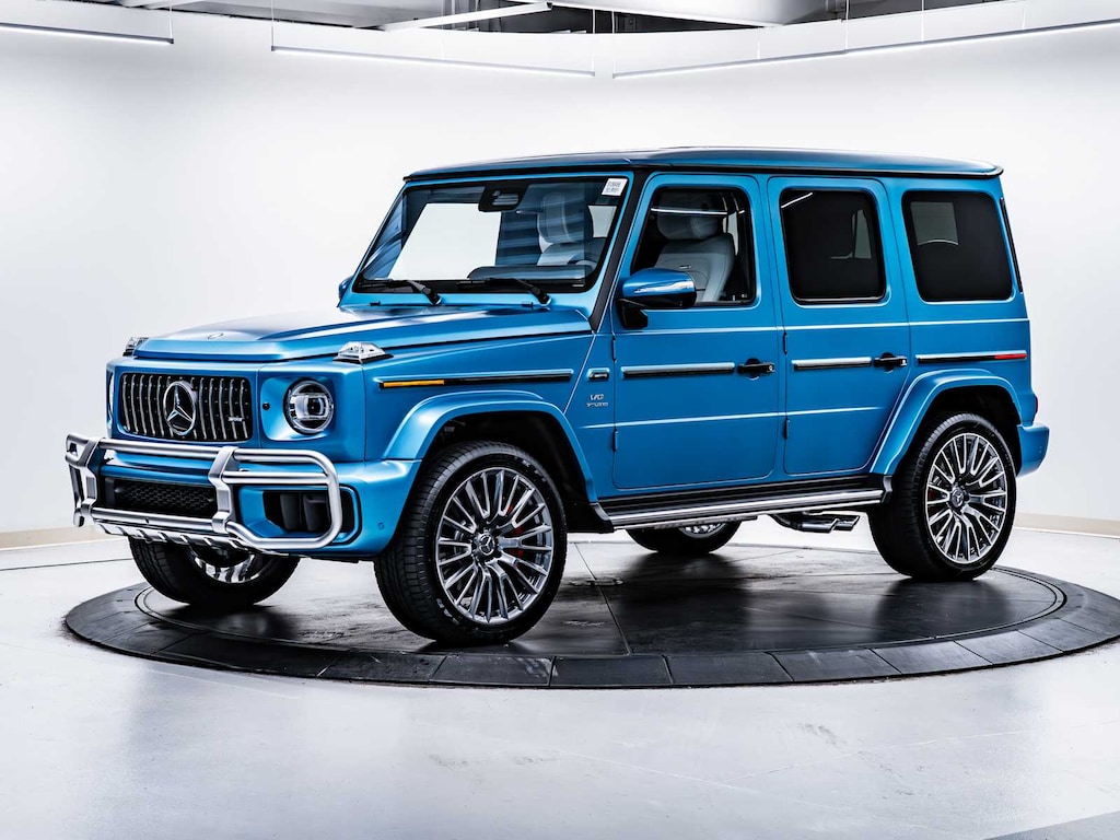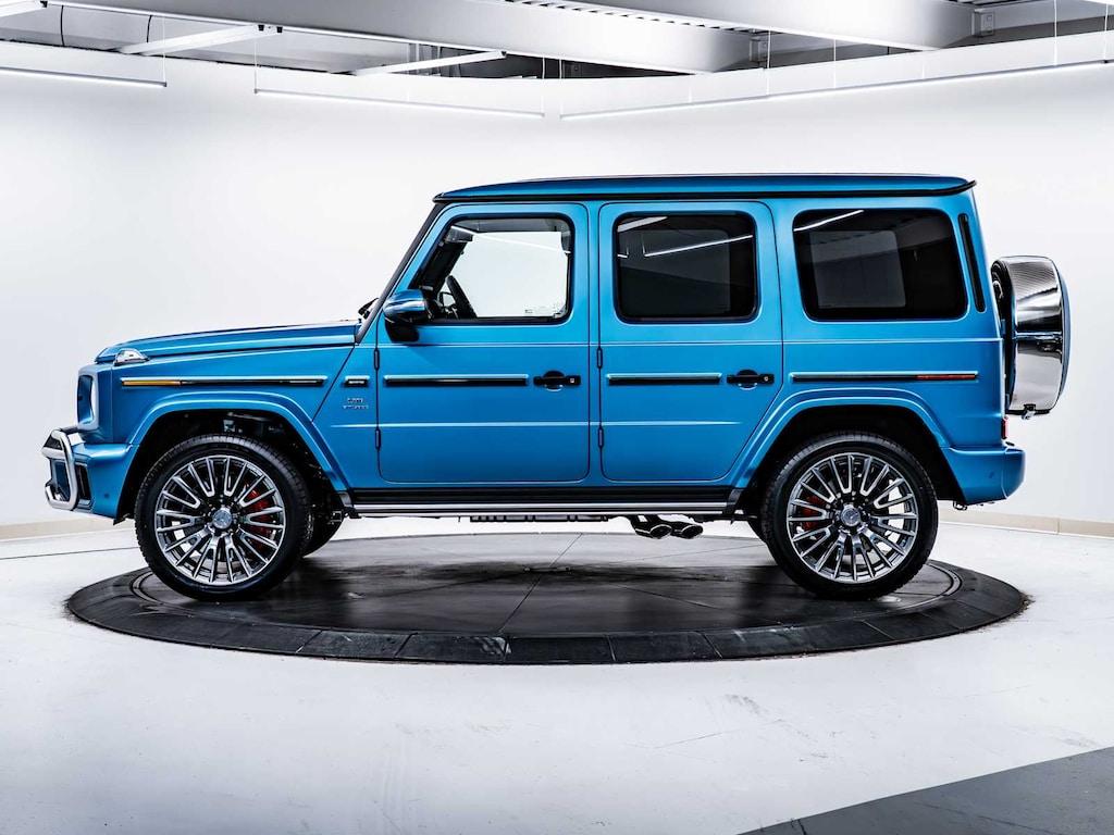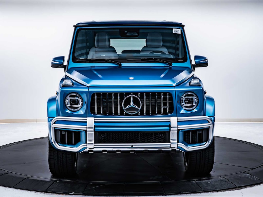 KEY FEATURES INCLUDE Leather Seats, Navigation, Sunroof, Full-Time All-Wheel, Rear Air, Heated Driver Seat, Back-Up Camera, Running Boards, Premium Sound System, Satellite Radio, iPod/MP3 Input, Onboard Communications System, Trailer Hitch, Aluminum Wheels, Keyless Start Mercedes-Benz AMG® G 63 with MANUFAKTUR Hyper Blue Magno exterior and Platinum White/Black interior features a 8 Cylinder Engine with 577 HP at 6000 RPM*. MP3 Player, Keyless Entry, Privacy Glass, Child Safety Locks, Steering Wheel Controls.