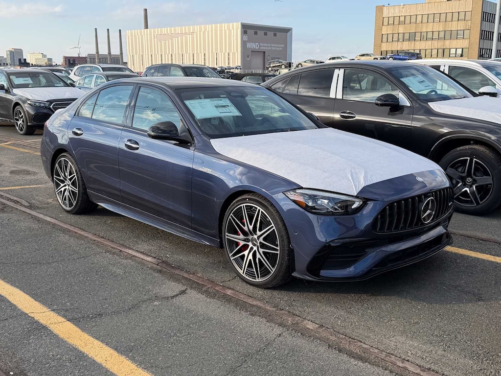 Electronic Stability Control, Brake Assist, 4-Wheel ABS, 4-Wheel Disc Brakes, Tire Pressure Monitoring System Mercedes-Benz AMG® C 43 with Twilight Blue Metallic exterior and AMG® Sienna Brown/Black interior features a 4 Cylinder Engine with 416 HP at 6750 RPM*.