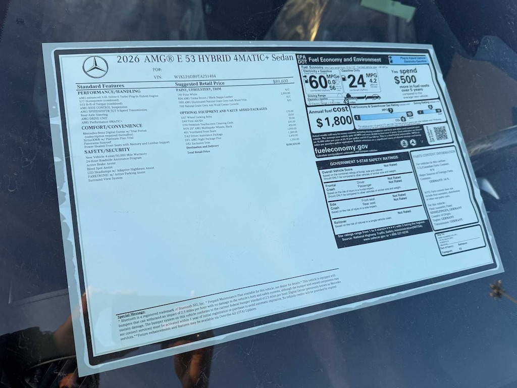 Lane Keeping Assist, Child Safety Locks, Electronic Stability Control, Brake Assist, 4-Wheel ABS, Tire Pressure Monitoring System, 4-Wheel Disc Brakes Mercedes-Benz AMG® E 53 E with Polar White exterior and Tonka Brown/Black interior features a Straight 6 Cylinder Engine with 577 HP at 5800 RPM*.