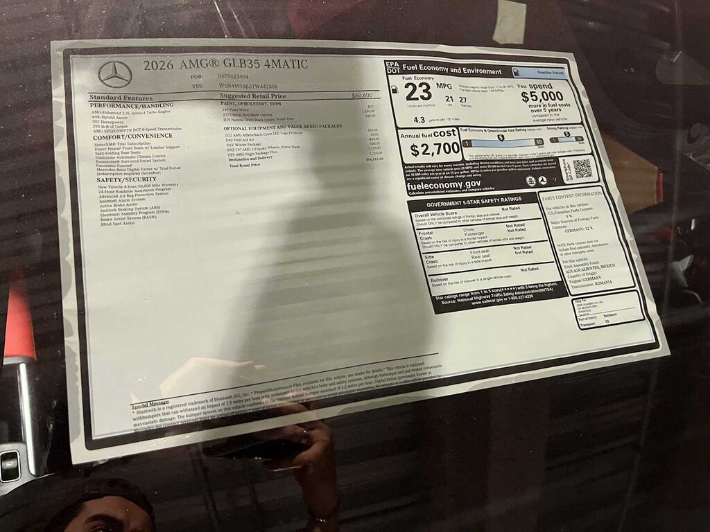 KEY FEATURES INCLUDE Panoramic Roof, Full-Time All-Wheel, Power Liftgate, Heated Driver Seat, Back-Up Camera, Premium Sound System, Satellite Radio, iPod/MP3 Input, Onboard Communications System, Dual Moonroof, Aluminum Wheels, Keyless Start, Dual Zone A/C, Smart Device Integration, Hands-Free Liftgate Mercedes-Benz AMG® GLB 35 with Polar White exterior and Classic Red/Black interior features a 4 Cylinder Engine with 302 HP at 5800 RPM*. Rear Spoiler, MP3 Player, Remote Trunk Release, Keyless Entry, Privacy Glass.
