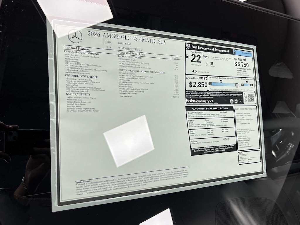 EXCELLENT SAFETY FOR YOUR FAMILY Blind Spot Monitor, Child Safety Locks, Electronic Stability Control, Brake Assist, 4-Wheel ABS, Tire Pressure Monitoring System, 4-Wheel Disc Brakes Mercedes-Benz AMG® GLC 43 with Starling Blue Metallic exterior and Black w/Red Accents interior features a 4 Cylinder Engine with 416 HP at 6750 RPM*.