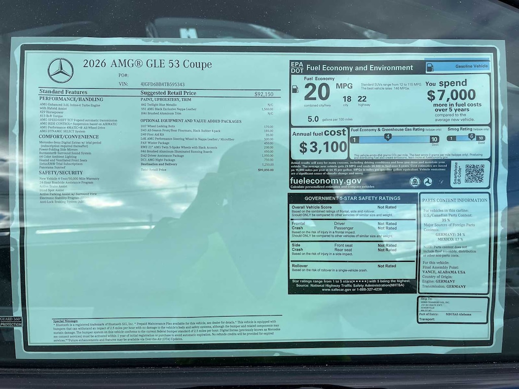 EXCELLENT SAFETY FOR YOUR FAMILY Blind Spot Monitor, Lane Keeping Assist, Electronic Stability Control, Brake Assist, 4-Wheel ABS, Tire Pressure Monitoring System, 4-Wheel Disc Brakes Mercedes-Benz AMG® GLE 53 with Twilight Blue Metallic exterior and Black interior features a Straight 6 Cylinder Engine with 429 HP at 6100 RPM*.