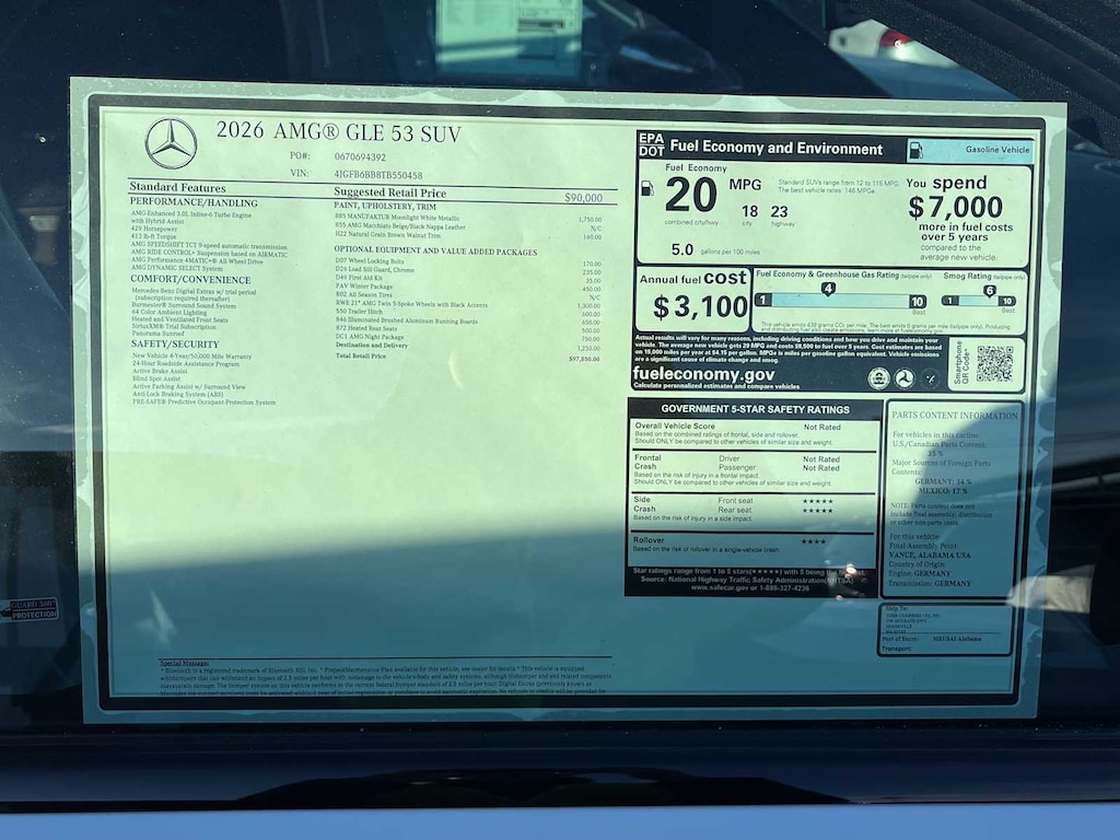EXCELLENT SAFETY FOR YOUR FAMILY Blind Spot Monitor, Electronic Stability Control, Brake Assist, 4-Wheel ABS, Tire Pressure Monitoring System, 4-Wheel Disc Brakes Mercedes-Benz AMG® GLE 53 with MANUFAKTUR Moonlight White Metallic exterior and Macchiato Beige/Black interior features a Straight 6 Cylinder Engine with 429 HP at 6100 RPM*.