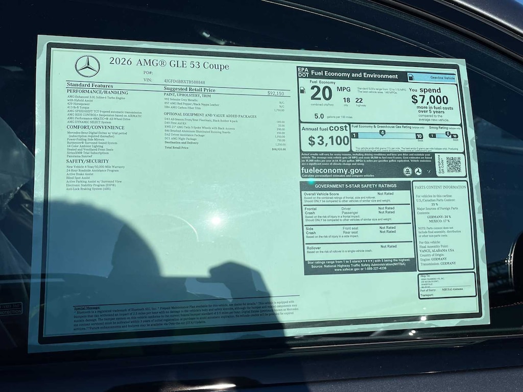 EXCELLENT SAFETY FOR YOUR FAMILY Blind Spot Monitor, Lane Keeping Assist, Child Safety Locks, Electronic Stability Control, Brake Assist, 4-Wheel ABS, Tire Pressure Monitoring System, 4-Wheel Disc Brakes Mercedes-Benz AMG® GLE 53 with Selenite Grey Metallic exterior and Red Pepper/Black interior features a Straight 6 Cylinder Engine with 429 HP at 6100 RPM*.