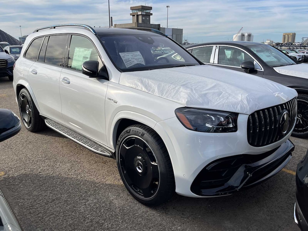 KEY FEATURES INCLUDE Leather Seats, Third Row Seat, Navigation, Sunroof, Panoramic Roof, Automatic Full-Time All-Wheel, Power Liftgate, Rear Air, Heated Driver Seat, Heated Rear Seat, Cooled Driver Seat, Back-Up Camera, Running Boards, Turbocharged, Premium Sound System. Mercedes-Benz AMG® GLS 63 with MANUFAKTUR Moonlight White Metallic exterior and Macchiato Beige w/ Diamond Stitching interior features a 8 Cylinder Engine with 603 HP at 5750 RPM*.