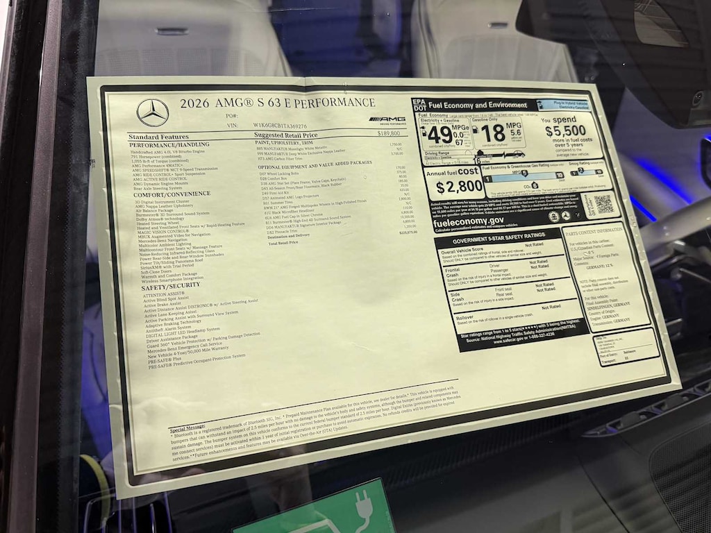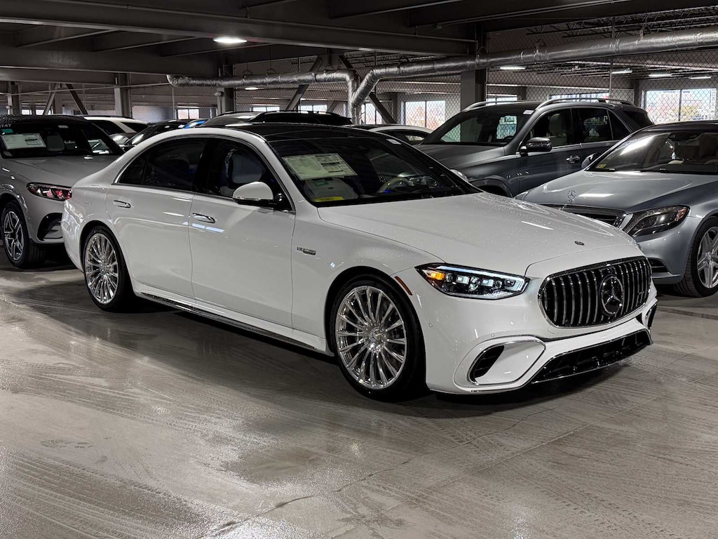 Blind Spot Monitor, Cross-Traffic Alert, Lane Keeping Assist, Electronic Stability Control, Brake Assist, 4-Wheel ABS, 4-Wheel Disc Brakes, Tire Pressure Monitoring System Mercedes-Benz AMG® S 63 E with MANUFAKTUR Moonlight White Metallic exterior and MANUFAKTRUR Deep White interior features a 8 Cylinder Engine with 791 HP at 5500 RPM*.