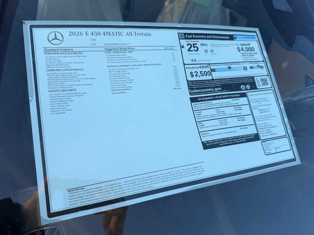 OPTION PACKAGES DRIVER ASSISTANCE PACKAGE Active Lane Keeping Assist, Active Steering Assist, Active Distance Assist DISTRONIC®, Active Speed Limit Assist, Traffic Sign Assist, PRESAFE® Impulse Side, Driving Assistance Package Plus Code, automatic lane change assist, DIGITAL LIGHT PACKAGE DIGITAL LIGHT, DIGITAL LIGHT Factory Code, HEATED REAR SEATS, WINTER PACKAGE Heated Steering Wheel, Winter Package Factory Code, Heated Windscreen Washer System, SUN PROTECTION PACKAGE: Sun Protection Package Code, Roller Sunblinds in Rear Doors, INSTRUMENT PANEL & BELTLINE IN NAPPA LOOK, ADVANCED USB PACKAGE 2 USB-C ports in the center console, 2 USB-C ports under the front center armrest and 2 USB-C ports for the rear on the center armrest; 2 12 V sockets, 1 in front, 1 in rear, all 6 USB ports have fast-charging capability and are suitable for data transfer and are capable of USB power delivery at 100W.