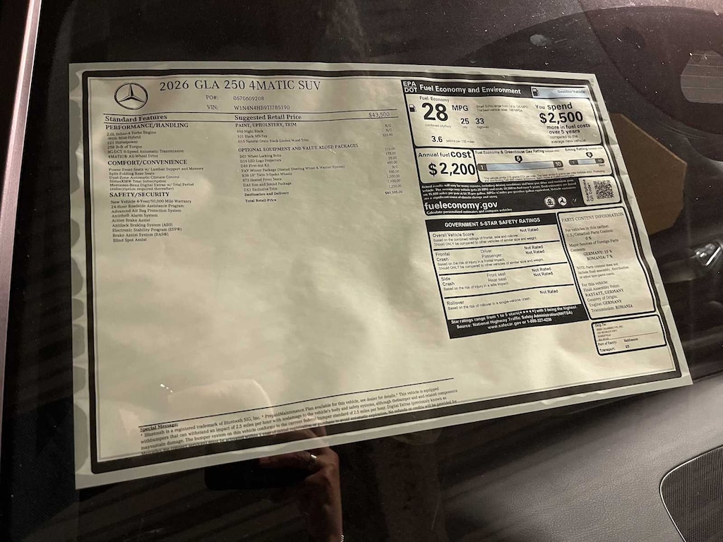 KEY FEATURES INCLUDE Full-Time 4MATIC® All-Wheel, Power Liftgate, Back-Up Camera, Satellite Radio, iPod/MP3 Input, Onboard Communications System, Aluminum Wheels, Keyless Start, Dual Zone A/C, Blind Spot Monitor, Brake Actuated Limited Slip Differential, Smart Device Integration Mercedes-Benz GLA 250 with Night Black exterior and Black interior features a 4 Cylinder Engine with 221 HP at 5500 RPM*. Rear Spoiler, MP3 Player, Privacy Glass, Keyless Entry, Remote Trunk Release.