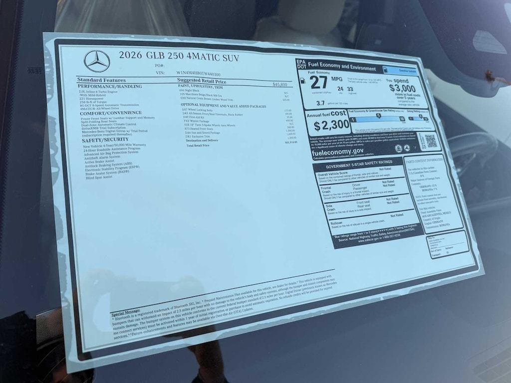 EXCELLENT SAFETY FOR YOUR FAMILY Electronic Stability Control, Brake Assist, 4-Wheel ABS, Tire Pressure Monitoring System, 4-Wheel Disc Brakes Mercedes-Benz GLB 250 with Night Black exterior and Macchiato Beige interior features a 4 Cylinder Engine with 221 HP at 5500 RPM*.