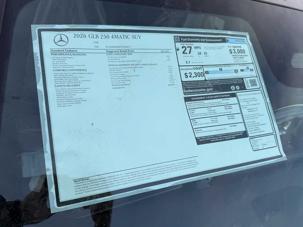 EXCELLENT SAFETY FOR YOUR FAMILY Electronic Stability Control, Brake Assist, 4-Wheel ABS, Tire Pressure Monitoring System, 4-Wheel Disc Brakes Mercedes-Benz GLB 250 with Mountain Grey Metallic exterior and Black interior features a 4 Cylinder Engine with 221 HP at 5500 RPM*.