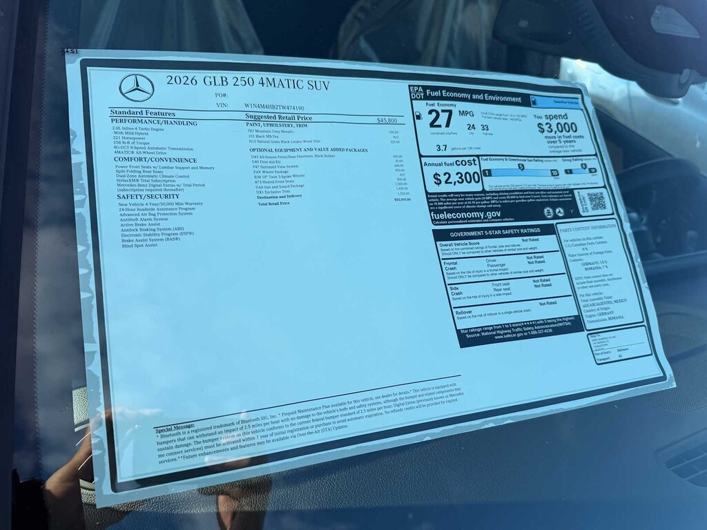EXCELLENT SAFETY FOR YOUR FAMILY Electronic Stability Control, Brake Assist, 4-Wheel ABS, Tire Pressure Monitoring System, 4-Wheel Disc Brakes Mercedes-Benz GLB 250 with Mountain Grey Metallic exterior and Black interior features a 4 Cylinder Engine with 221 HP at 5500 RPM*.