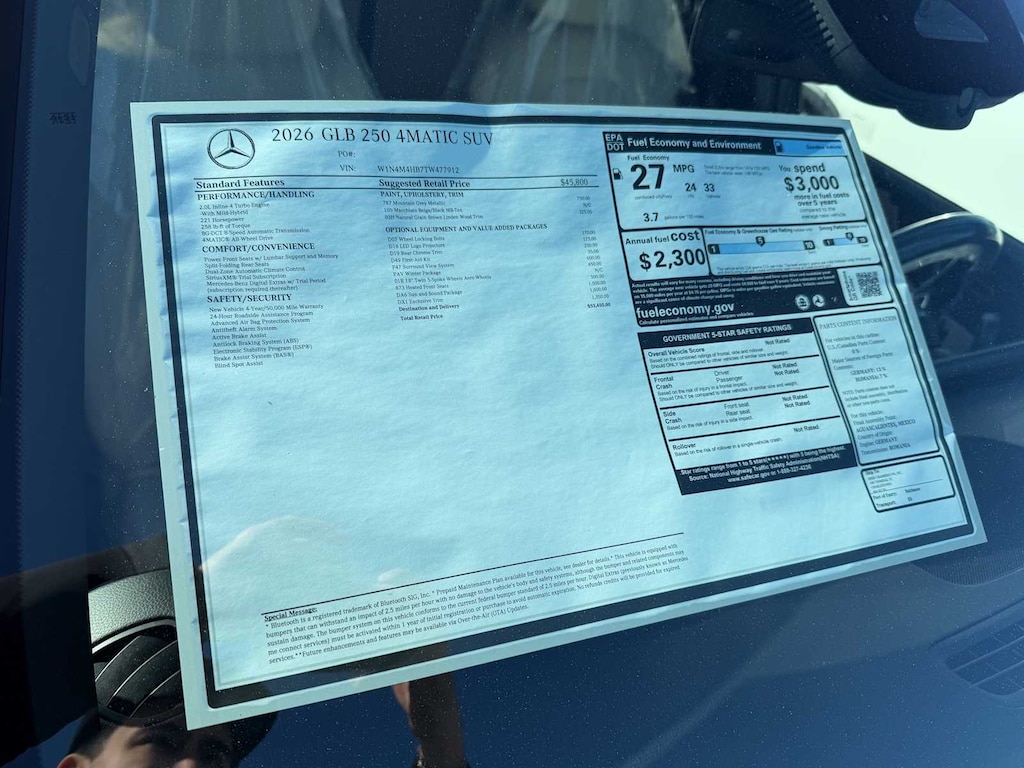 EXCELLENT SAFETY FOR YOUR FAMILY Electronic Stability Control, Brake Assist, 4-Wheel ABS, Tire Pressure Monitoring System, 4-Wheel Disc Brakes Mercedes-Benz GLB 250 with Mountain Grey Metallic exterior and Macchiato Beige interior features a 4 Cylinder Engine with 221 HP at 5500 RPM*.