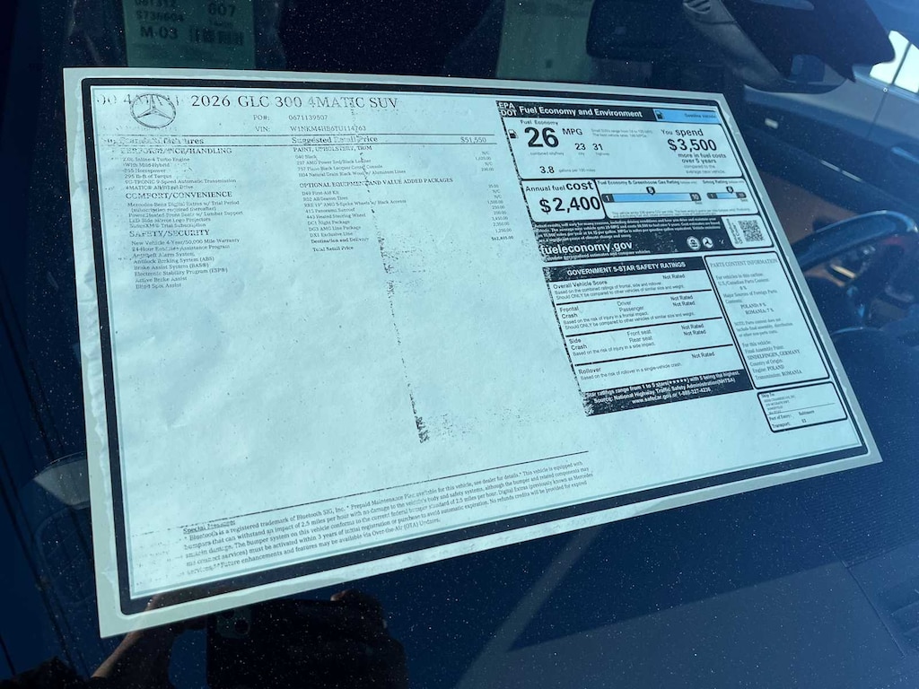 EXCELLENT SAFETY FOR YOUR FAMILY Child Safety Locks, Electronic Stability Control, Brake Assist, 4-Wheel ABS, Tire Pressure Monitoring System, 4-Wheel Disc Brakes Mercedes-Benz GLC 300 with Black exterior and AMG® Power Red/Black interior features a 4 Cylinder Engine with 255 HP at 5800 RPM*.