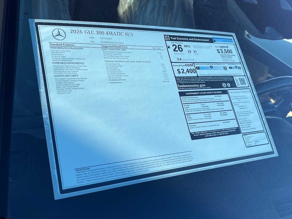 EXCELLENT SAFETY FOR YOUR FAMILY Blind Spot Monitor, Cross-Traffic Alert, Child Safety Locks, Electronic Stability Control, Brake Assist, 4-Wheel ABS, Tire Pressure Monitoring System, 4-Wheel Disc Brakes Mercedes-Benz GLC 300 with MANUFAKTUR Moonlight White Metallic exterior and Macchiato Beige interior features a 4 Cylinder Engine with 255 HP at 5800 RPM*.