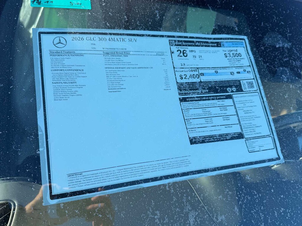 EXCELLENT SAFETY FOR YOUR FAMILY Blind Spot Monitor, Child Safety Locks, Electronic Stability Control, Brake Assist, 4-Wheel ABS, Tire Pressure Monitoring System, 4-Wheel Disc Brakes Mercedes-Benz GLC 300 with Verde Silver Metallic exterior and AMG® Neva Grey interior features a 4 Cylinder Engine with 255 HP at 5800 RPM*.