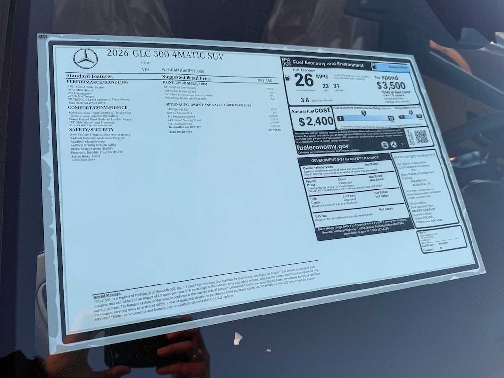 EXCELLENT SAFETY FOR YOUR FAMILY Child Safety Locks, Electronic Stability Control, Brake Assist, 4-Wheel ABS, Tire Pressure Monitoring System, 4-Wheel Disc Brakes Mercedes-Benz GLC 300 with Graphite Grey Metallic exterior and Sienna Brown interior features a 4 Cylinder Engine with 255 HP at 5800 RPM*.