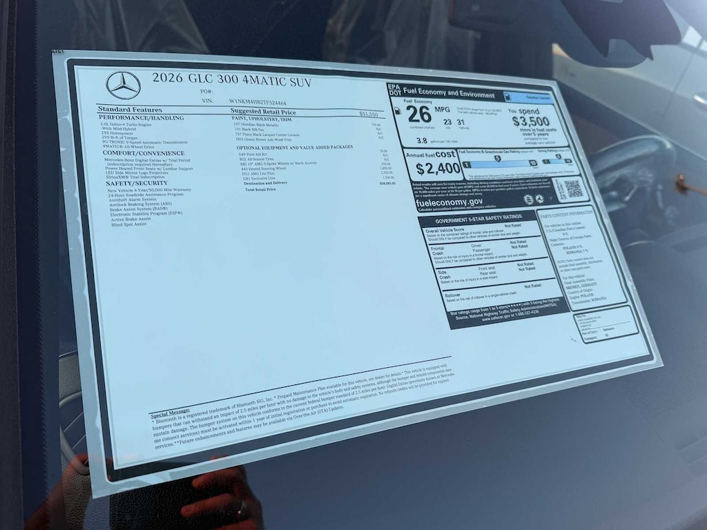 EXCELLENT SAFETY FOR YOUR FAMILY Cross-Traffic Alert, Child Safety Locks, Electronic Stability Control, Brake Assist, 4-Wheel ABS, Tire Pressure Monitoring System, 4-Wheel Disc Brakes Mercedes-Benz GLC 300 with Obsidian Black Metallic exterior and Black interior features a 4 Cylinder Engine with 255 HP at 5800 RPM*.