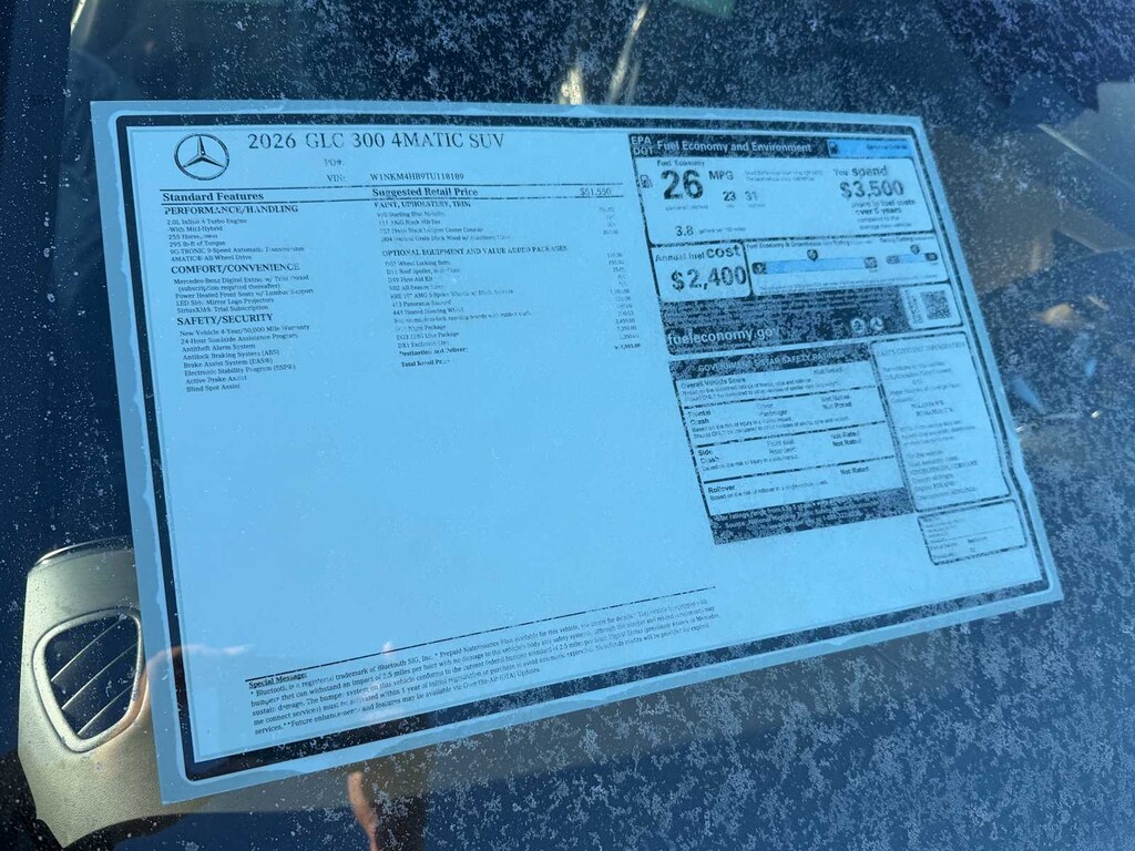 EXCELLENT SAFETY FOR YOUR FAMILY Blind Spot Monitor, Child Safety Locks, Electronic Stability Control, Brake Assist, 4-Wheel ABS, Tire Pressure Monitoring System, 4-Wheel Disc Brakes Mercedes-Benz GLC 300 with Starling Blue Metallic exterior and AMG® Black interior features a 4 Cylinder Engine with 255 HP at 5800 RPM*.