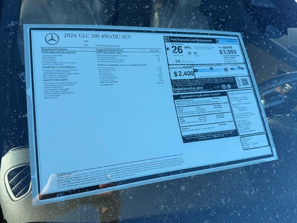 EXCELLENT SAFETY FOR YOUR FAMILY Child Safety Locks, Electronic Stability Control, Brake Assist, 4-Wheel ABS, Tire Pressure Monitoring System, 4-Wheel Disc Brakes Mercedes-Benz GLC 300 with MANUFAKTUR Moonlight White Metallic exterior and Macchiato Beige interior features a 4 Cylinder Engine with 255 HP at 5800 RPM*.