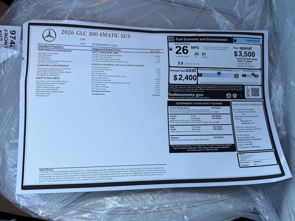 Full-Time 4MATIC® All-Wheel, Power Liftgate, Heated Driver Seat, Back-Up Camera, Turbocharged, Satellite Radio, iPod/MP3 Input, Onboard Communications System, Aluminum Wheels, Keyless Start, Dual Zone A/C, Brake Actuated Limited Slip Differential, Cross-Traffic Alert, Hands-Free Liftgate, WiFi Hotspot. MP3 Player, Keyless Entry, Remote Trunk Release, Privacy Glass, Steering Wheel Controls.
