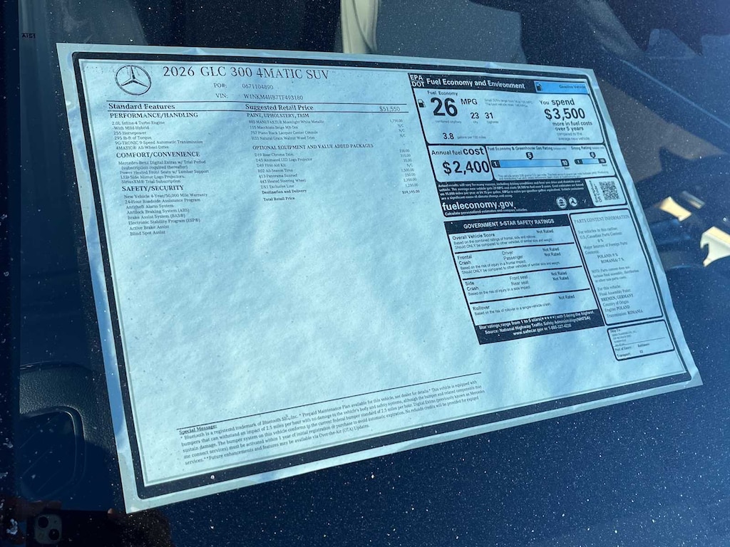EXCELLENT SAFETY FOR YOUR FAMILY Child Safety Locks, Electronic Stability Control, Brake Assist, 4-Wheel ABS, Tire Pressure Monitoring System, 4-Wheel Disc Brakes Mercedes-Benz GLC 300 with MANUFAKTUR Moonlight White Metallic exterior and Macchiato Beige interior features a 4 Cylinder Engine with 255 HP at 5800 RPM*.
