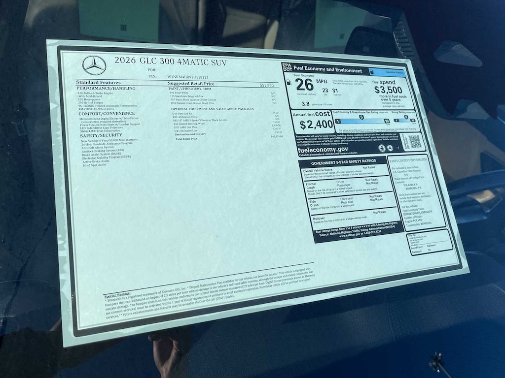 EXCELLENT SAFETY FOR YOUR FAMILY Cross-Traffic Alert, Child Safety Locks, Electronic Stability Control, Brake Assist, 4-Wheel ABS, Tire Pressure Monitoring System, 4-Wheel Disc Brakes Mercedes-Benz GLC 300 with Polar White exterior and Macchiato Beige interior features a 4 Cylinder Engine with 255 HP at 5800 RPM*.