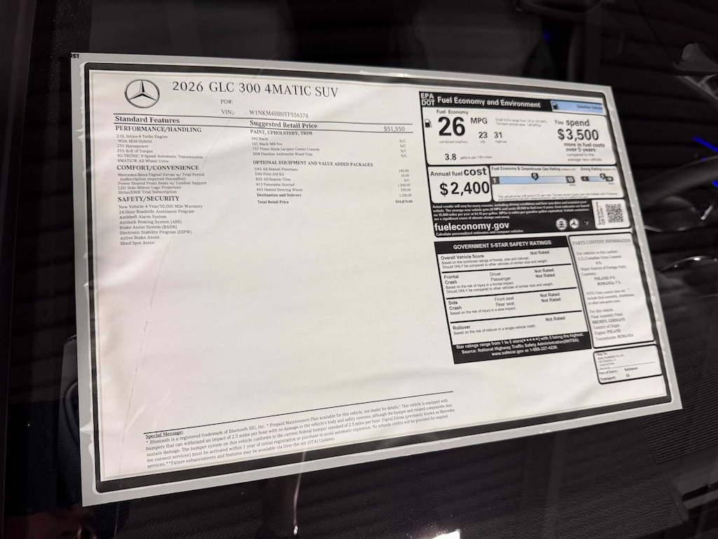 EXCELLENT SAFETY FOR YOUR FAMILY Child Safety Locks, Electronic Stability Control, Brake Assist, 4-Wheel ABS, Tire Pressure Monitoring System, 4-Wheel Disc Brakes Mercedes-Benz GLC 300 with Black exterior and Black interior features a 4 Cylinder Engine with 255 HP at 5800 RPM*.