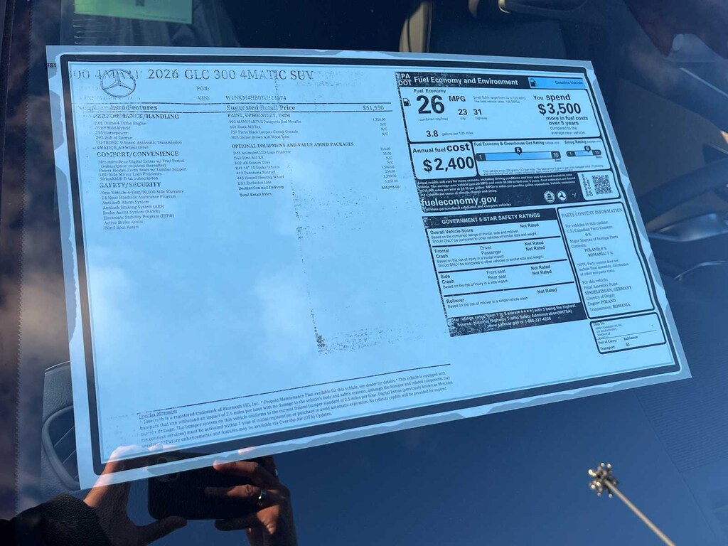 EXCELLENT SAFETY FOR YOUR FAMILY Child Safety Locks, Electronic Stability Control, Brake Assist, 4-Wheel ABS, 4-Wheel Disc Brakes, Tire Pressure Monitoring System Mercedes-Benz GLC 300 with MANUFAKTUR Patagonia Red Metallic exterior and Black interior features a 4 Cylinder Engine with 255 HP at 5800 RPM*.