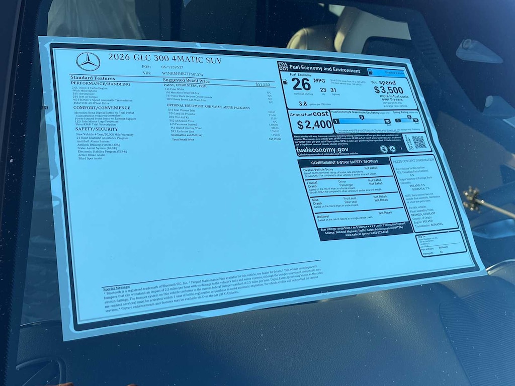 EXCELLENT SAFETY FOR YOUR FAMILY Child Safety Locks, Electronic Stability Control, Brake Assist, 4-Wheel ABS, Tire Pressure Monitoring System, 4-Wheel Disc Brakes Mercedes-Benz GLC 300 with Polar White exterior and Macchiato Beige interior features a 4 Cylinder Engine with 255 HP at 5800 RPM*.