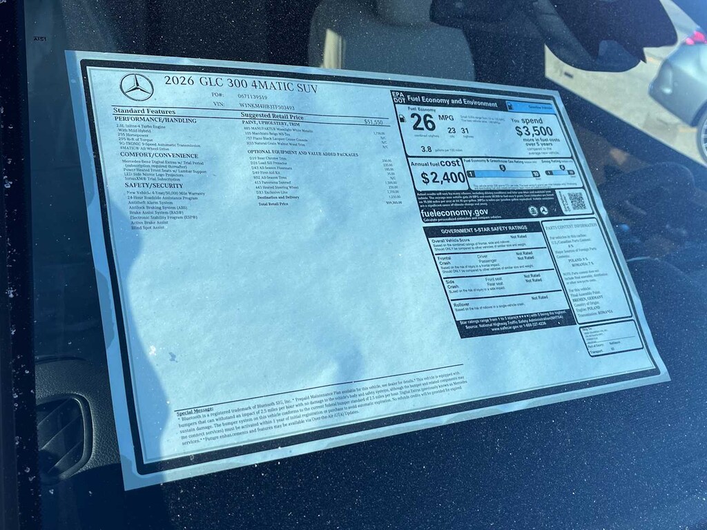 EXCELLENT SAFETY FOR YOUR FAMILY Child Safety Locks, Electronic Stability Control, Brake Assist, 4-Wheel ABS, Tire Pressure Monitoring System, 4-Wheel Disc Brakes Mercedes-Benz GLC 300 with MANUFAKTUR Moonlight White Metallic exterior and Macchiato Beige interior features a 4 Cylinder Engine with 255 HP at 5800 RPM*.