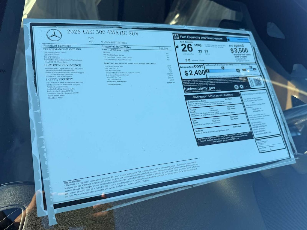 EXCELLENT SAFETY FOR YOUR FAMILY Cross-Traffic Alert, Child Safety Locks, Electronic Stability Control, Brake Assist, 4-Wheel ABS, Tire Pressure Monitoring System, 4-Wheel Disc Brakes Mercedes-Benz GLC 300 with Black exterior and Macchiato Beige interior features a 4 Cylinder Engine with 255 HP at 5800 RPM*.