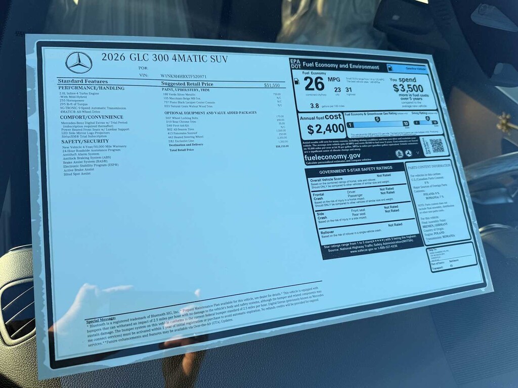 EXCELLENT SAFETY FOR YOUR FAMILY Child Safety Locks, Electronic Stability Control, Brake Assist, 4-Wheel ABS, Tire Pressure Monitoring System, 4-Wheel Disc Brakes Mercedes-Benz GLC 300 with Verde Silver Metallic exterior and Macchiato Beige interior features a 4 Cylinder Engine with 255 HP at 5800 RPM*.