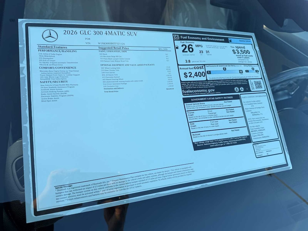 EXCELLENT SAFETY FOR YOUR FAMILY Cross-Traffic Alert, Child Safety Locks, Electronic Stability Control, Brake Assist, 4-Wheel ABS, Tire Pressure Monitoring System, 4-Wheel Disc Brakes Mercedes-Benz GLC 300 with Black exterior and Macchiato Beige interior features a 4 Cylinder Engine with 255 HP at 5800 RPM*.