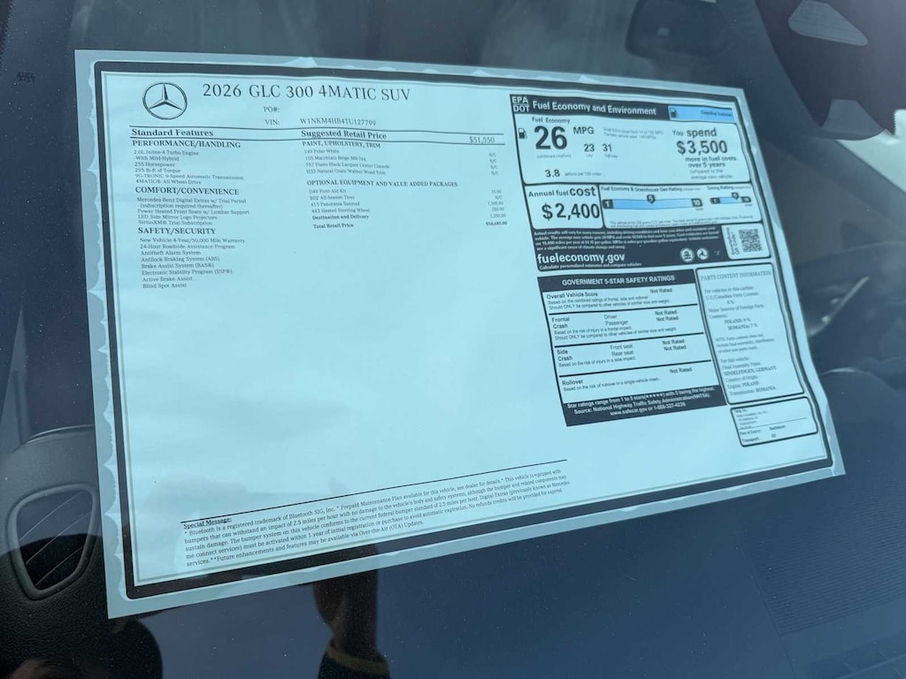 EXCELLENT SAFETY FOR YOUR FAMILY Child Safety Locks, Electronic Stability Control, Brake Assist, 4-Wheel ABS, Tire Pressure Monitoring System, 4-Wheel Disc Brakes Mercedes-Benz GLC 300 with Polar White exterior and Macchiato Beige interior features a 4 Cylinder Engine with 255 HP at 5800 RPM*.