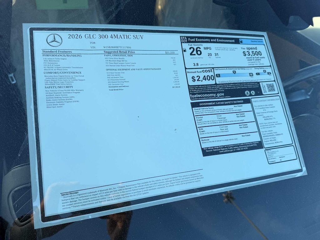 EXCELLENT SAFETY FOR YOUR FAMILY Child Safety Locks, Electronic Stability Control, Brake Assist, 4-Wheel ABS, Tire Pressure Monitoring System, 4-Wheel Disc Brakes Mercedes-Benz GLC 300 with Cirrus Silver Metallic exterior and Macchiato Beige interior features a 4 Cylinder Engine with 255 HP at 5800 RPM*.