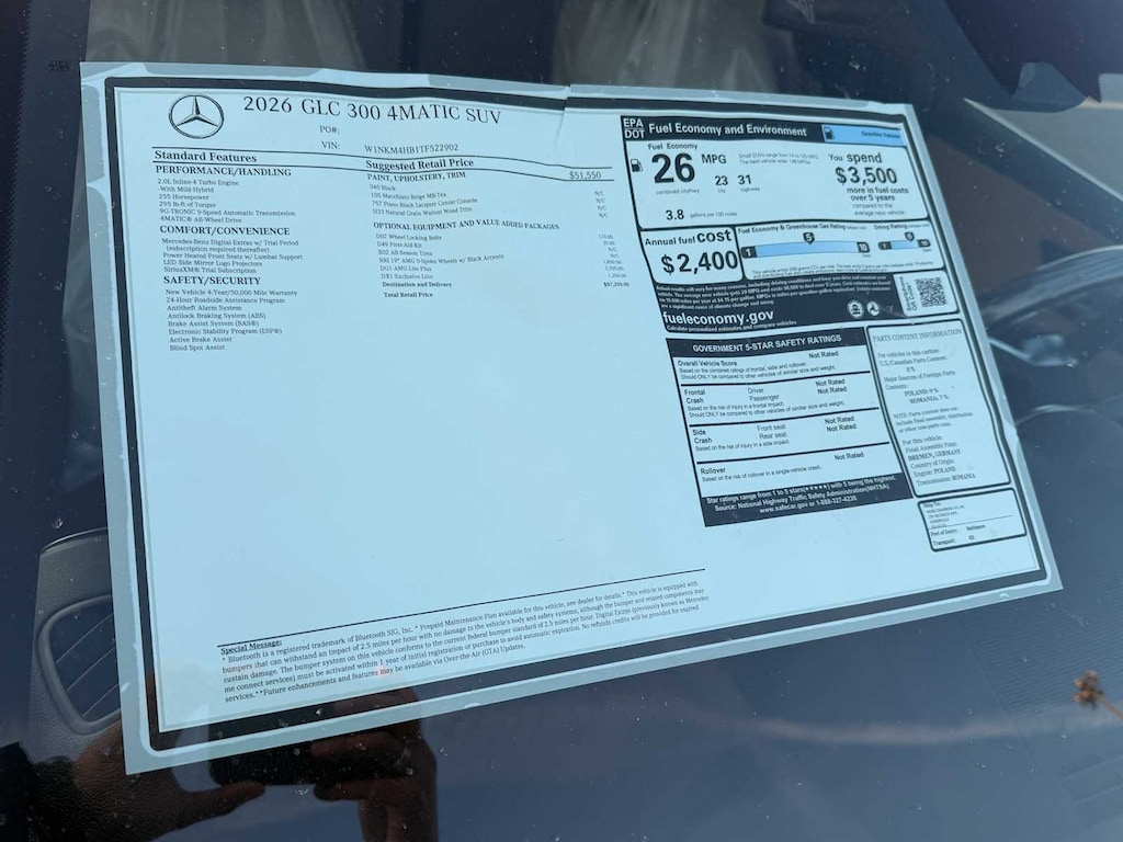 EXCELLENT SAFETY FOR YOUR FAMILY Child Safety Locks, Electronic Stability Control, Brake Assist, 4-Wheel ABS, Tire Pressure Monitoring System, 4-Wheel Disc Brakes Mercedes-Benz GLC 300 with Black exterior and Macchiato Beige interior features a 4 Cylinder Engine with 255 HP at 5800 RPM*.