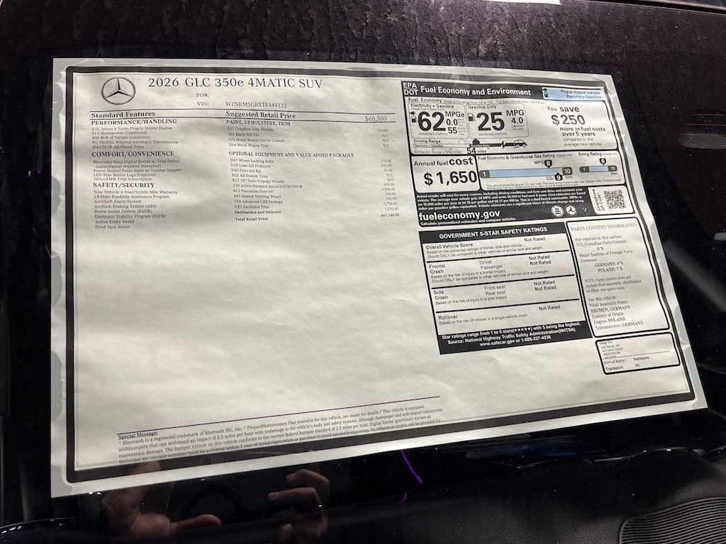 KEY FEATURES INCLUDE Full-Time 4MATIC® All-Wheel, Power Liftgate, Heated Driver Seat, Back-Up Camera, Turbocharged, Satellite Radio, iPod/MP3 Input, Onboard Communications System, Aluminum Wheels, Keyless Start, Dual Zone A/C, Hands-Free Liftgate, WiFi Hotspot, Smart Device Integration, Blind Spot Monitor. Mercedes-Benz GLC 350e with Graphite Grey Metallic exterior and Black interior features a 4 Cylinder Engine with 313 HP at 6100 RPM*.