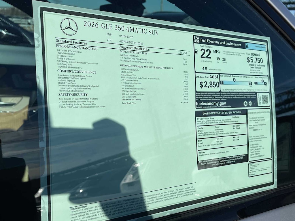 EXCELLENT SAFETY FOR YOUR FAMILY Child Safety Locks, Electronic Stability Control, Brake Assist, 4-Wheel ABS, 4-Wheel Disc Brakes, Tire Pressure Monitoring System Mercedes-Benz GLE 350 with Cirrus Silver Metallic exterior and Macchiato/Black interior features a 4 Cylinder Engine with 255 HP at 5800 RPM*.