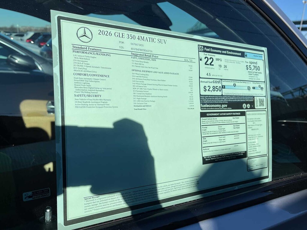 EXCELLENT SAFETY FOR YOUR FAMILY Child Safety Locks, Electronic Stability Control, Brake Assist, 4-Wheel ABS, 4-Wheel Disc Brakes, Tire Pressure Monitoring System Mercedes-Benz GLE 350 with Cirrus Silver Metallic exterior and Black interior features a 4 Cylinder Engine with 255 HP at 5800 RPM*.