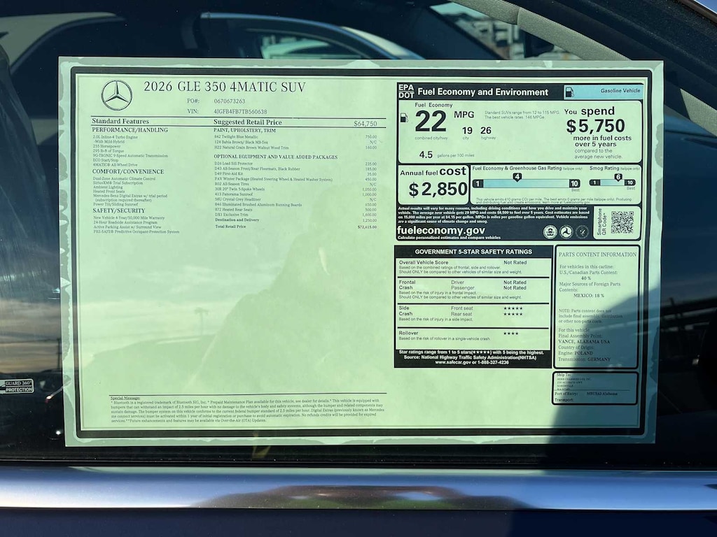 EXCELLENT SAFETY FOR YOUR FAMILY Child Safety Locks, Electronic Stability Control, Brake Assist, 4-Wheel ABS, 4-Wheel Disc Brakes, Tire Pressure Monitoring System Mercedes-Benz GLE 350 with Twilight Blue Metallic exterior and Bahia Brown/Black interior features a 4 Cylinder Engine with 255 HP at 5800 RPM*.